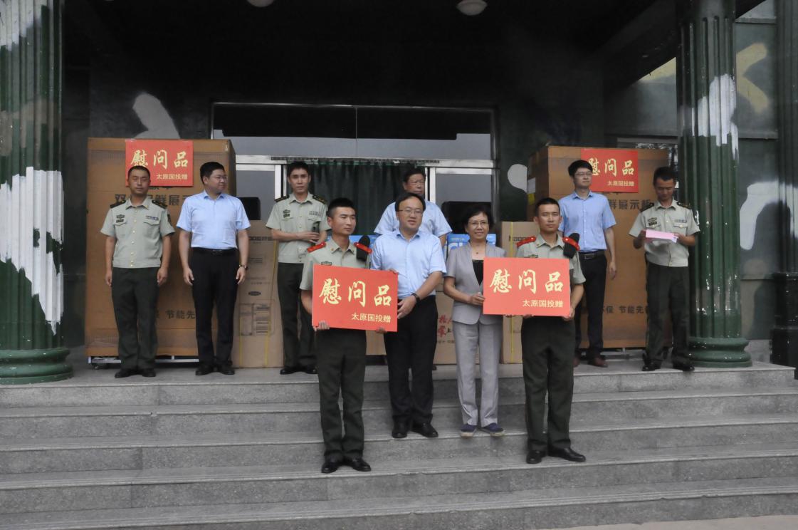 在“八一”建軍節來臨之際,為慶祝中國人民解放軍建軍90周年,7月29日,太原國投集團來到武警太原市支隊一大隊,送上了節日的問候和祝福,公司黨委書記馮澤亭、副董事長、副總經理文劍鋒、工會主席陳建梅、紀委書記楊柳、總經理助理陳薪文參加了此次活動。