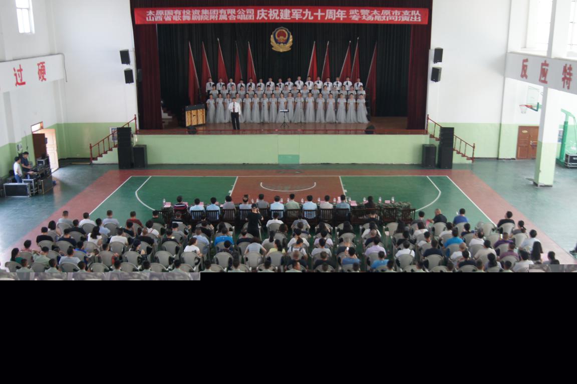 下午15:00,全體人員在一大隊綜合訓練館觀看了由太原國投集團冠名的專場慰問演出,演出節目有山西省歌舞劇院附屬合唱團帶來的《黃河大合唱》部分曲目,長征組歌等;更有武警太原市支隊一大隊演唱的《中國武警進行曲》,曲調鏗鏘有力,博得觀眾陣陣掌聲,將音樂會推向了高潮!最后在混聲合唱《保衛黃河》的歌聲中,慰問演出圓滿結束。
