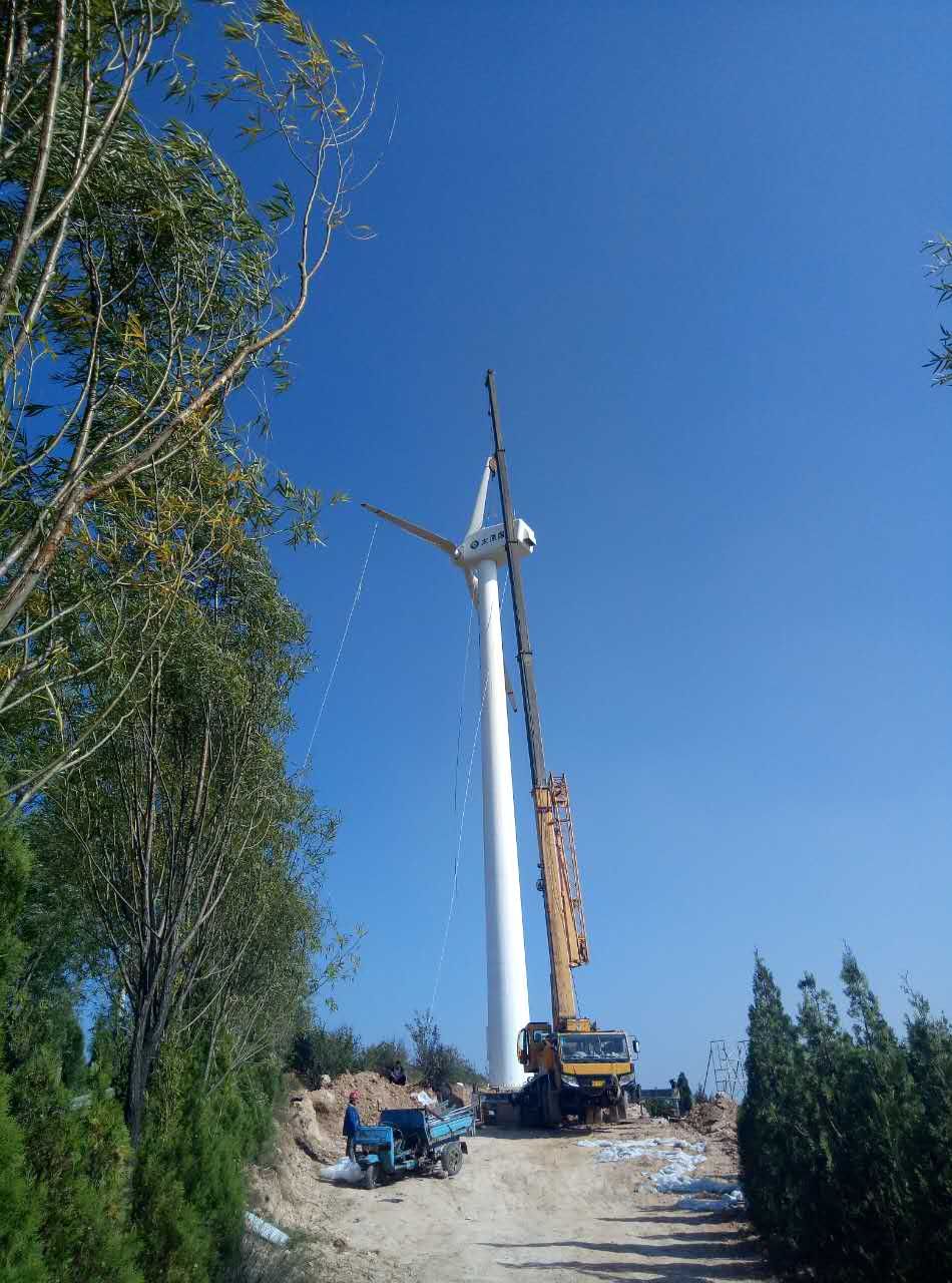 微電網項目設計100KW風機共三臺,塔高30M,下底直徑2.2M,葉片長10.5M。參加此次風機吊裝工程作業的有建設、設計、施工、監理等相關單位。在吊裝過程中,參建各方以“安全第一”為原則,嚴格執行《風機吊裝專項施工方案》,按照吊裝順序緊密施工,保證作業質量和吊裝進度。吊裝完畢后,進行了單項工程初步驗收,各單位一致認為該工程符合設計文件要求,施工過程中嚴格按規范要求實施,工程資料齊全,質量合格。至此,西山生態文化旅游開發區(北區)供水泵站新能源微電網項目已完成風機吊裝、綜合配電室裝飾裝修及微電網設備安裝工程,正在進行光伏區基礎的緊張施工。