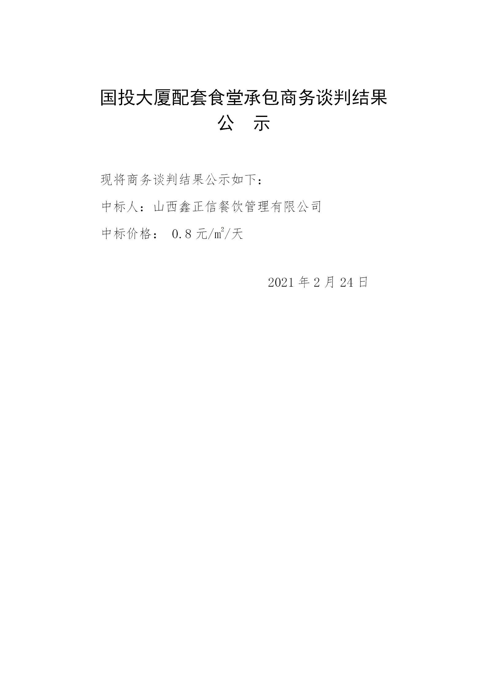 國(guó)投大廈配套食堂承包商務(wù)談判結(jié)果公示