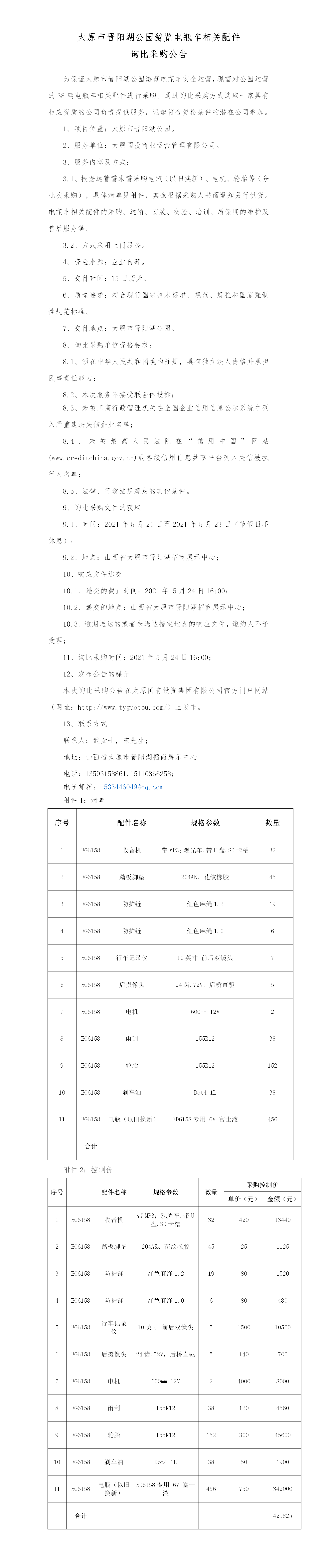 太原市晉陽(yáng)湖公園游覽電瓶車相關(guān)配件詢比采購(gòu)公告