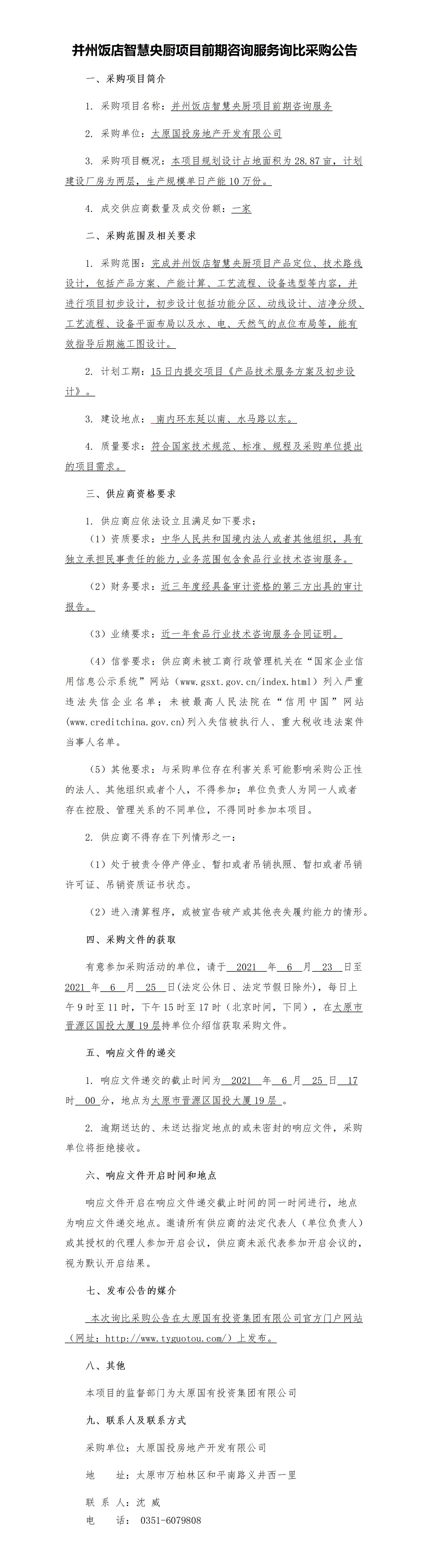 并州飯店智慧央廚項目前期咨詢服務詢比采購公告_01