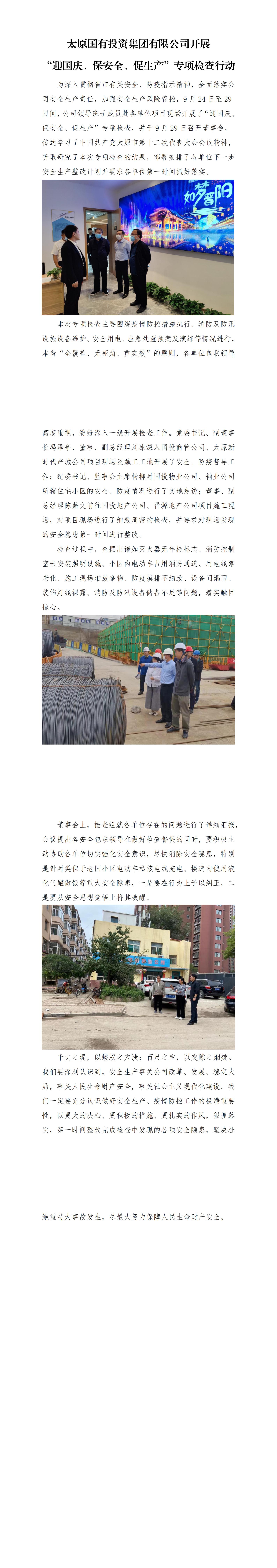 太原國有投資集團有限公司開展“迎國慶、保安全、促生產”專項檢查行動