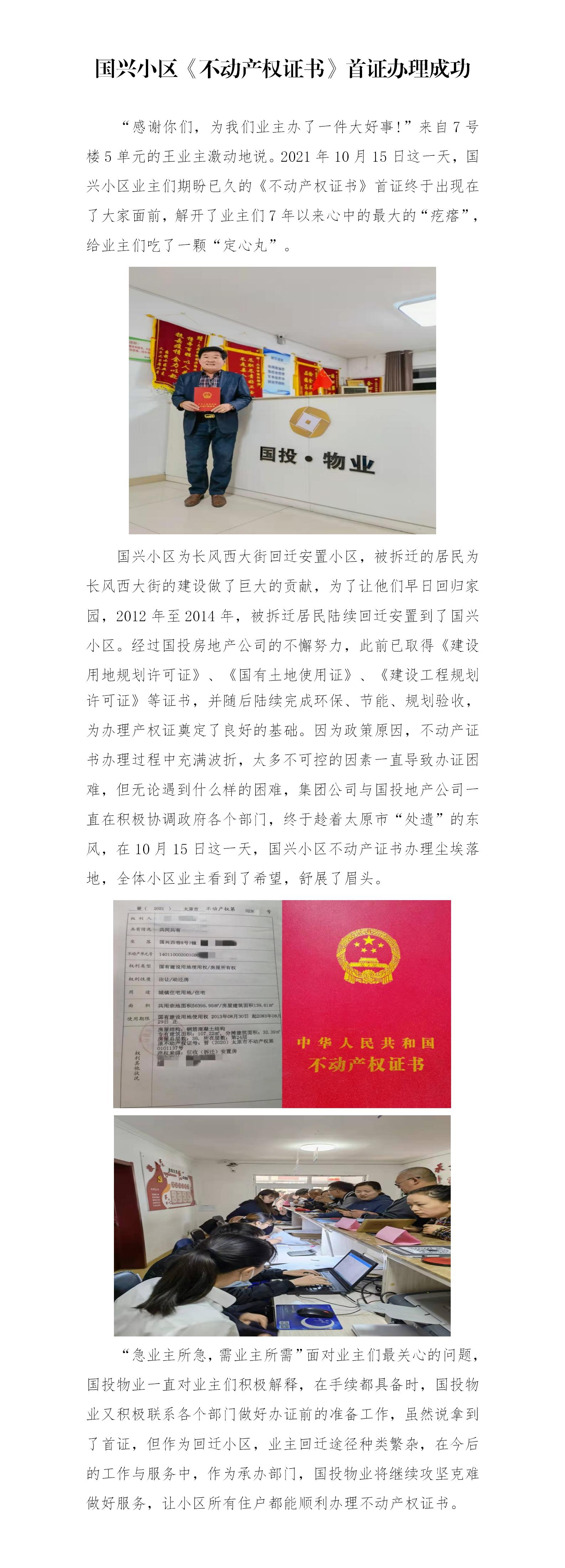 國興小區不動產權證書首證辦理成功