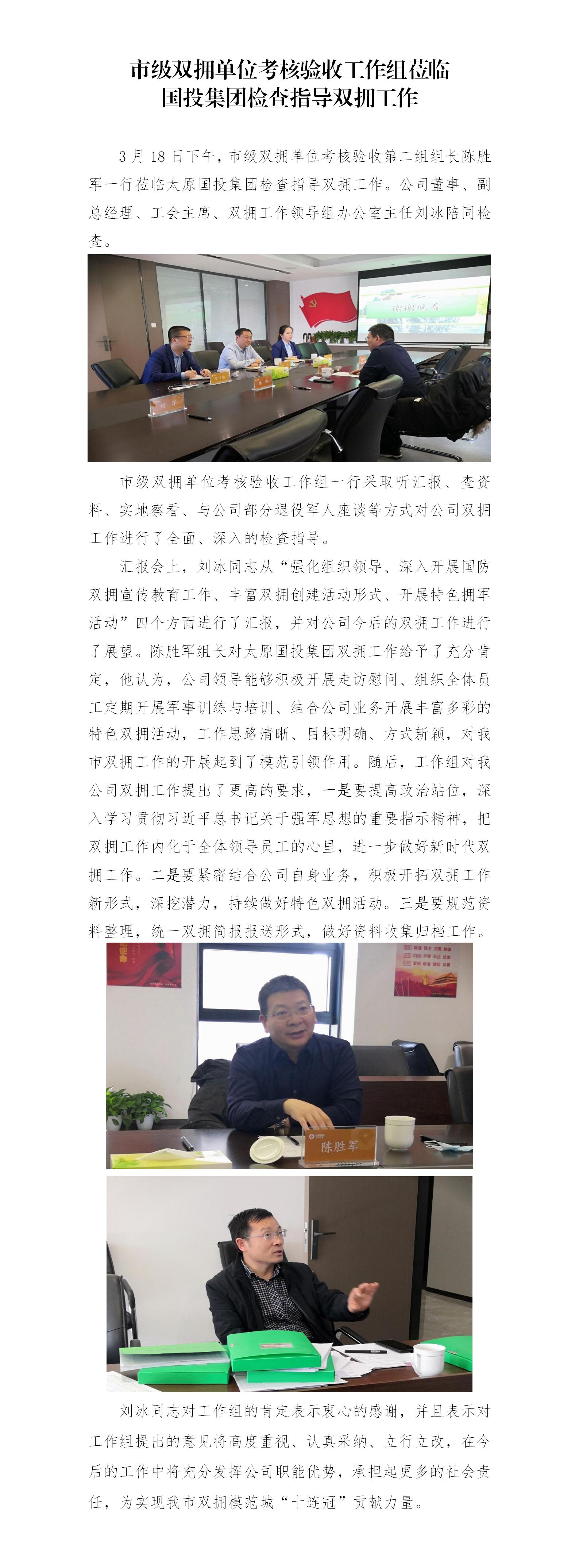 市級雙擁單位考核驗收工作組蒞臨國投集團檢查指導雙擁工作
