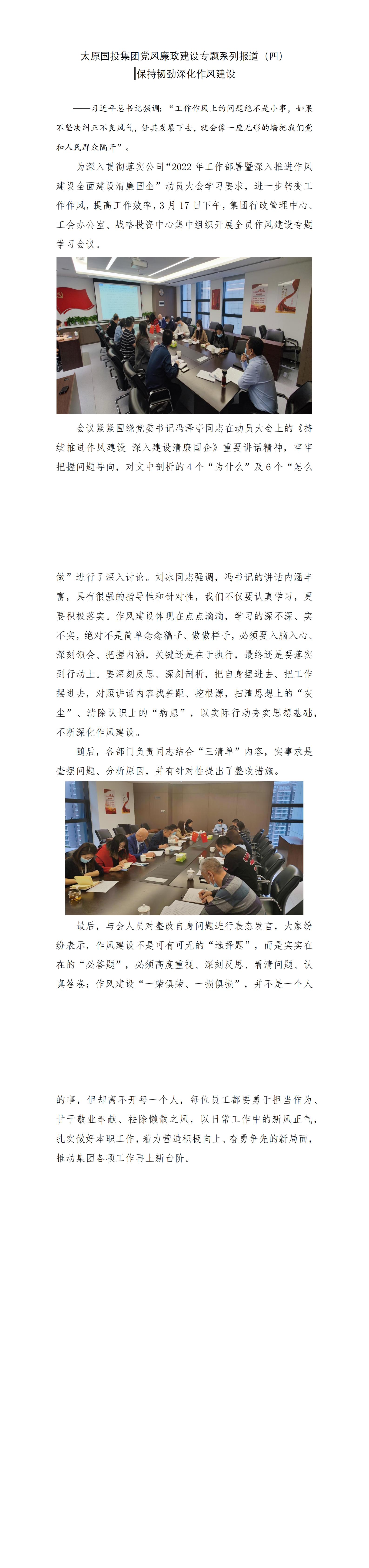 太原國投集團黨風(fēng)廉政建設(shè)專題系列報道(四)保持韌勁深化作風(fēng)建設(shè)
