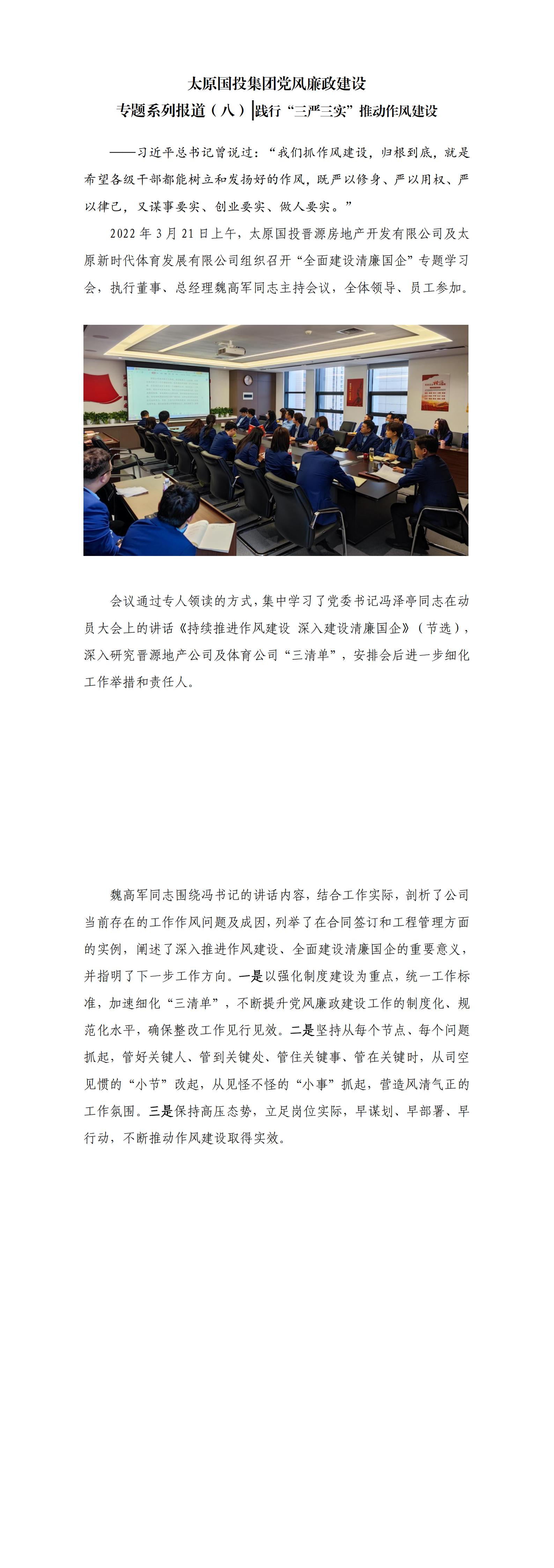 太原國投集團黨風廉政建設專題系列報道(八)踐行“三嚴三實”推動作風建設