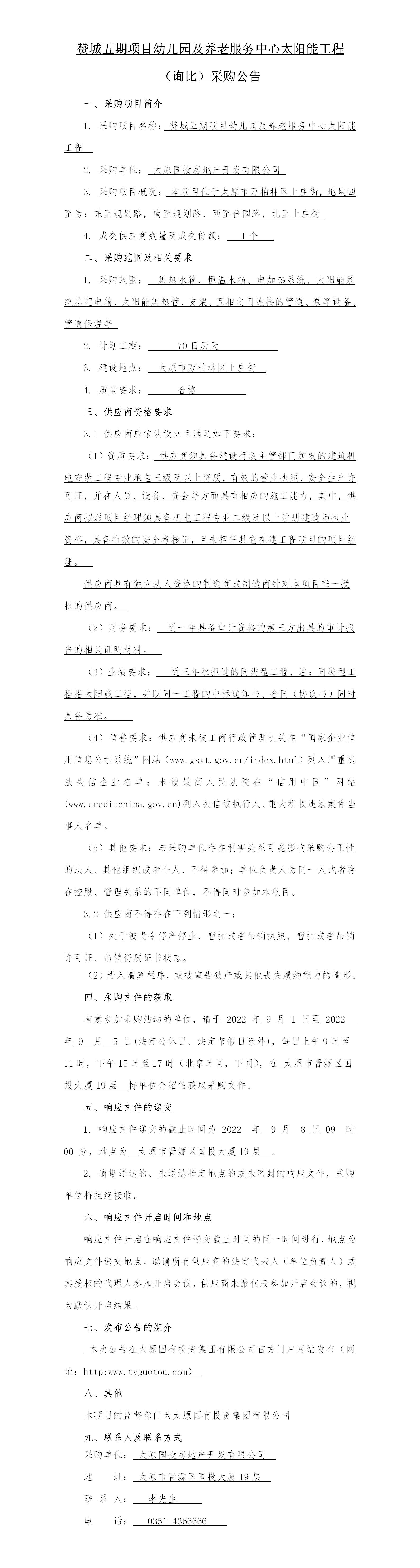 贊城五期項目幼兒園及養老服務中心太陽能工程詢比采購公告
