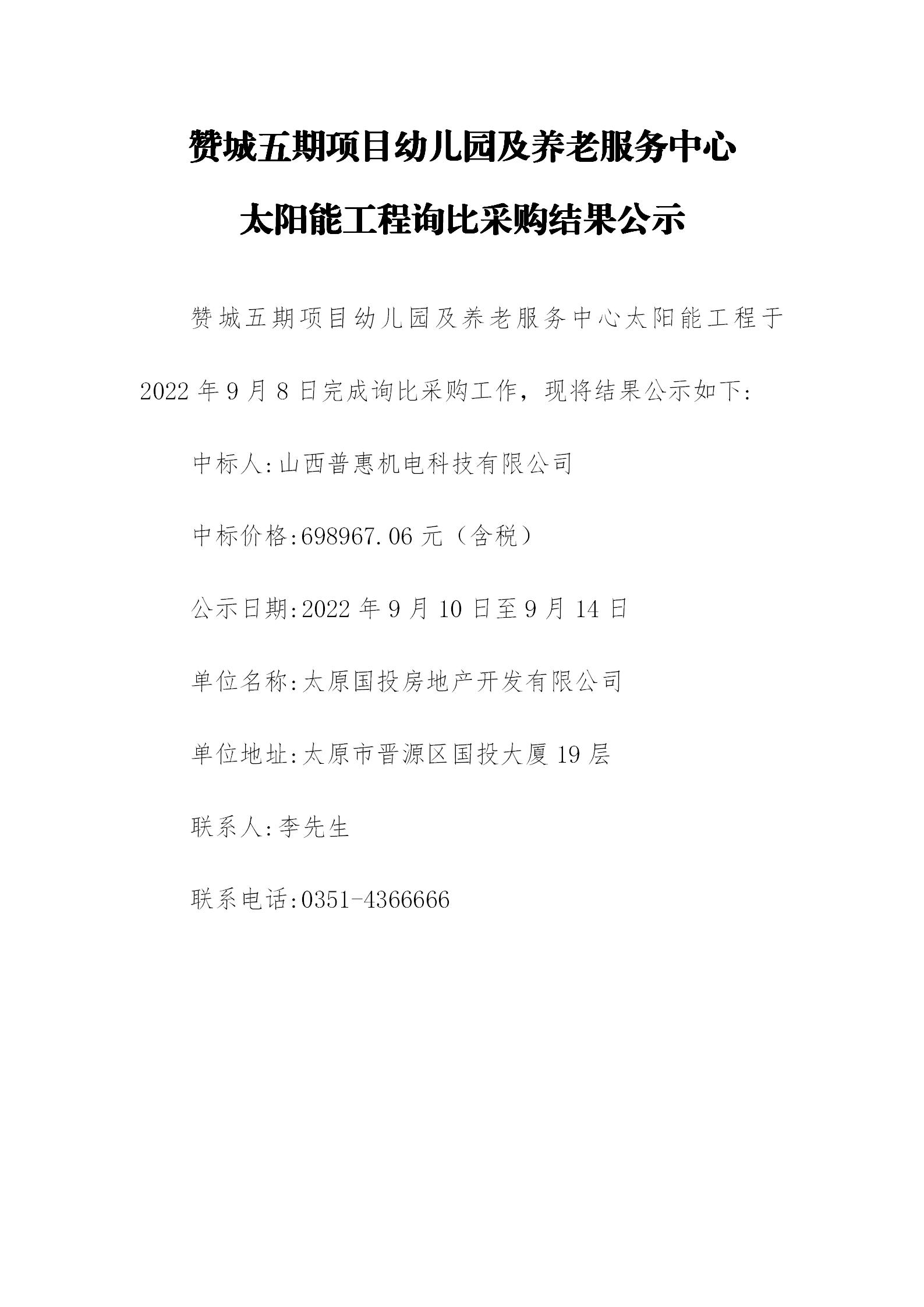 贊城五期項目幼兒園及養老服務中心太陽能工程詢比采購結果公示