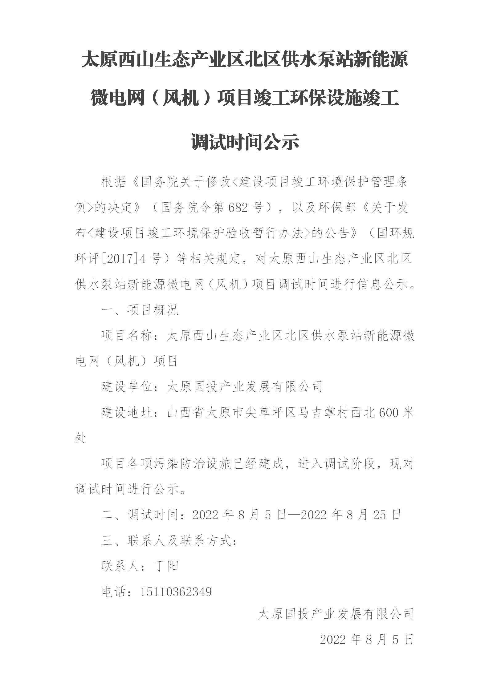 太原西山生態產業區北區供水泵站新能源微電網(風機)項目調試公示