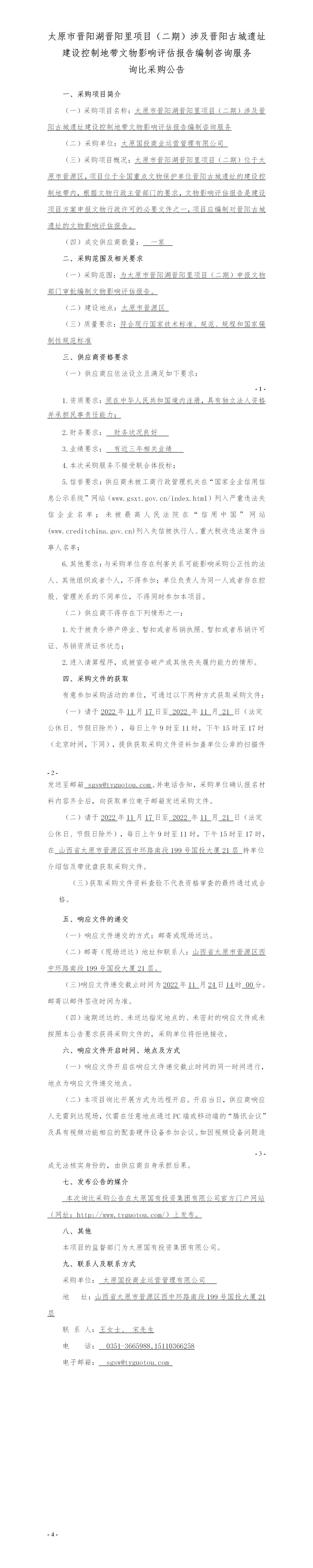 太原市晉陽湖晉陽里項目(二期)涉及晉陽古城遺址建設控制地帶文物影響評估報告編制咨詢服務詢比采購公告