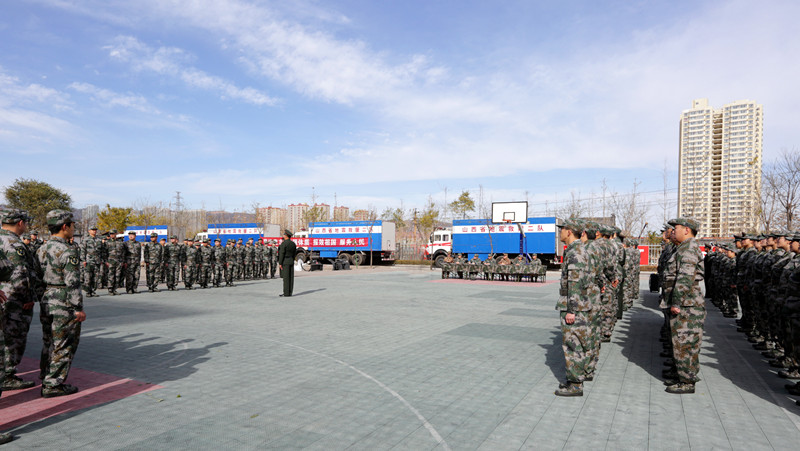 上午8時,國投民兵應急連全體官兵在集團列隊集合,整裝待發,連指導員馮澤亭同志做了動員講話。8時20分,全體官兵統一乘車前往萬柏林區人武部,開始了為期一天的“地震救援演練”。