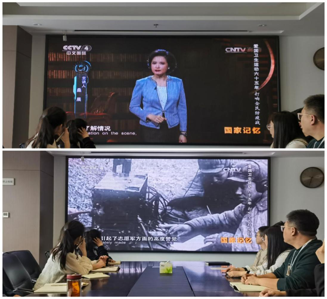 2023年4月是第全國(guó)35個(gè)愛國(guó)衛(wèi)生月。為全面落實(shí)“愛國(guó)衛(wèi)生運(yùn)動(dòng)”精神,進(jìn)一步倡導(dǎo)文明健康社會(huì)風(fēng)尚,建設(shè)健康美麗宜居家園。機(jī)關(guān)第二黨支部于4月13日下午,組織支部所屬全體黨員以及行政管理中心、內(nèi)部控制中心全體員工開展主題黨日活動(dòng),觀看國(guó)家記憶《愛國(guó)衛(wèi)生運(yùn)動(dòng)六十五年》系列紀(jì)錄片,活動(dòng)由支部書記主持。