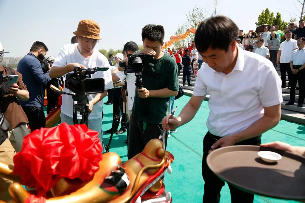 晉源區(qū)委書記張農(nóng)壽,晉源區(qū)長(zhǎng)張耀,省文旅廳處長(zhǎng)馮海明,國(guó)投集團(tuán)董事長(zhǎng)蘭衛(wèi)軍為本次活動(dòng)的龍舟“披紅點(diǎn)睛”,一點(diǎn)天庭,吉星高照,鴻運(yùn)當(dāng)頭;二點(diǎn)龍鼻,和諧幸福,萬(wàn)家平安;三點(diǎn)口利,笑口常開,大吉大利;四點(diǎn)龍角,風(fēng)調(diào)雨順,國(guó)泰民安;五點(diǎn)龍睛,愿龍舟為大家?guī)?lái)健康、吉祥和如意。