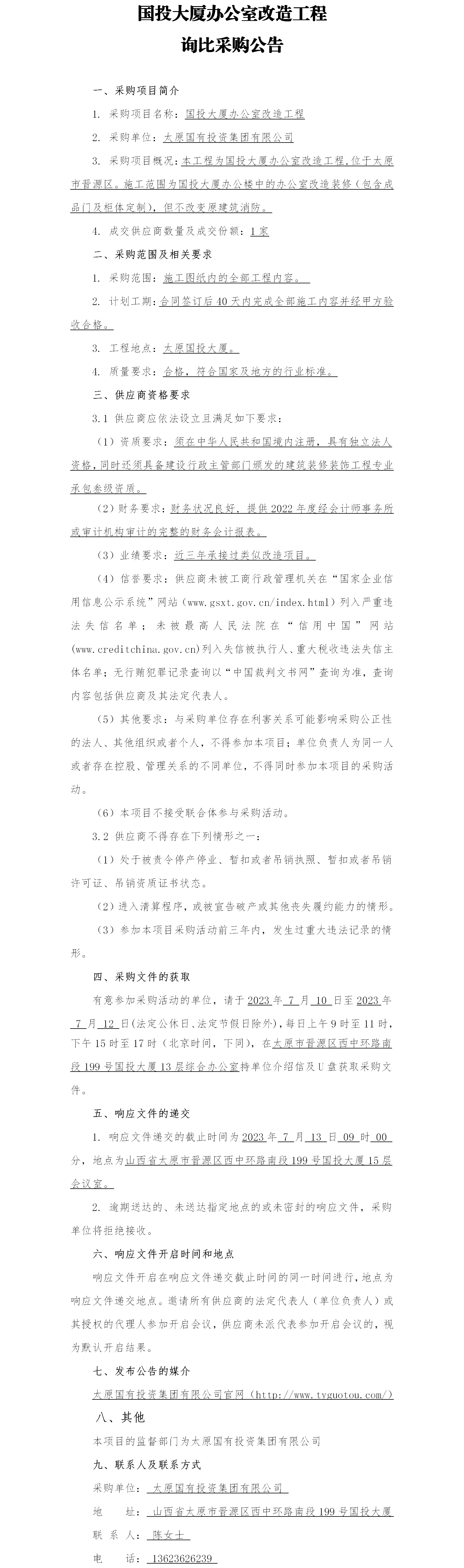 太原國有投資集團有限公司 ?版權所有 地址:太原市萬柏林區和平南路219號 聯系電話:0351-2607986