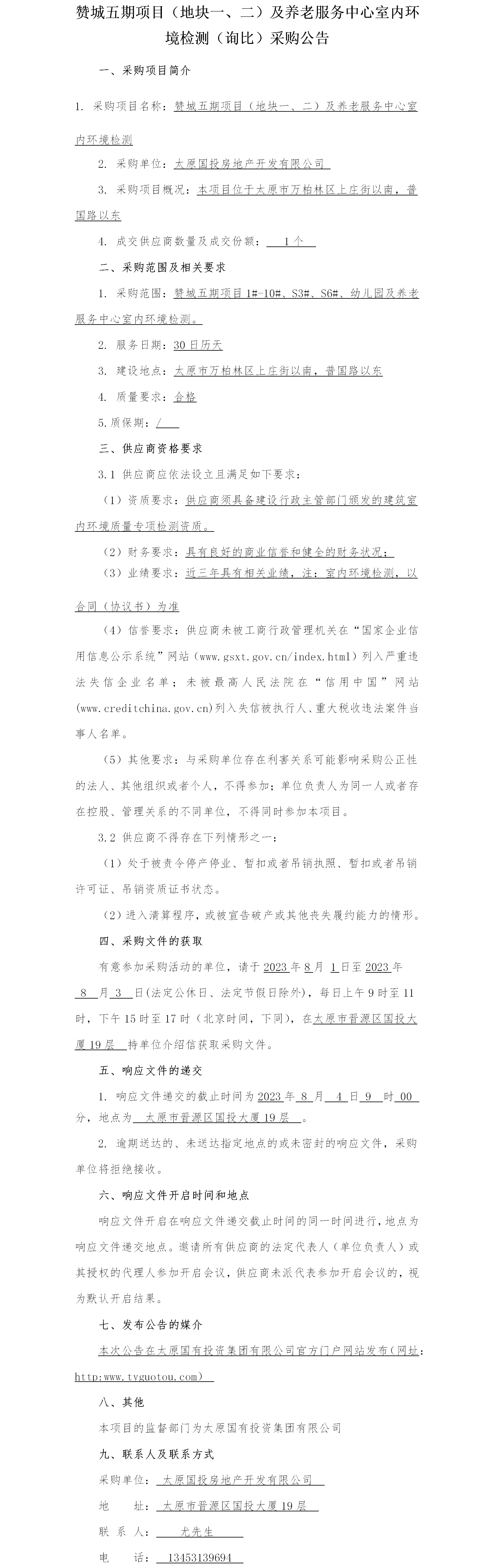 贊城五期項目(地塊一、二)及養老服務中心室內環境檢測(詢比)采購公告