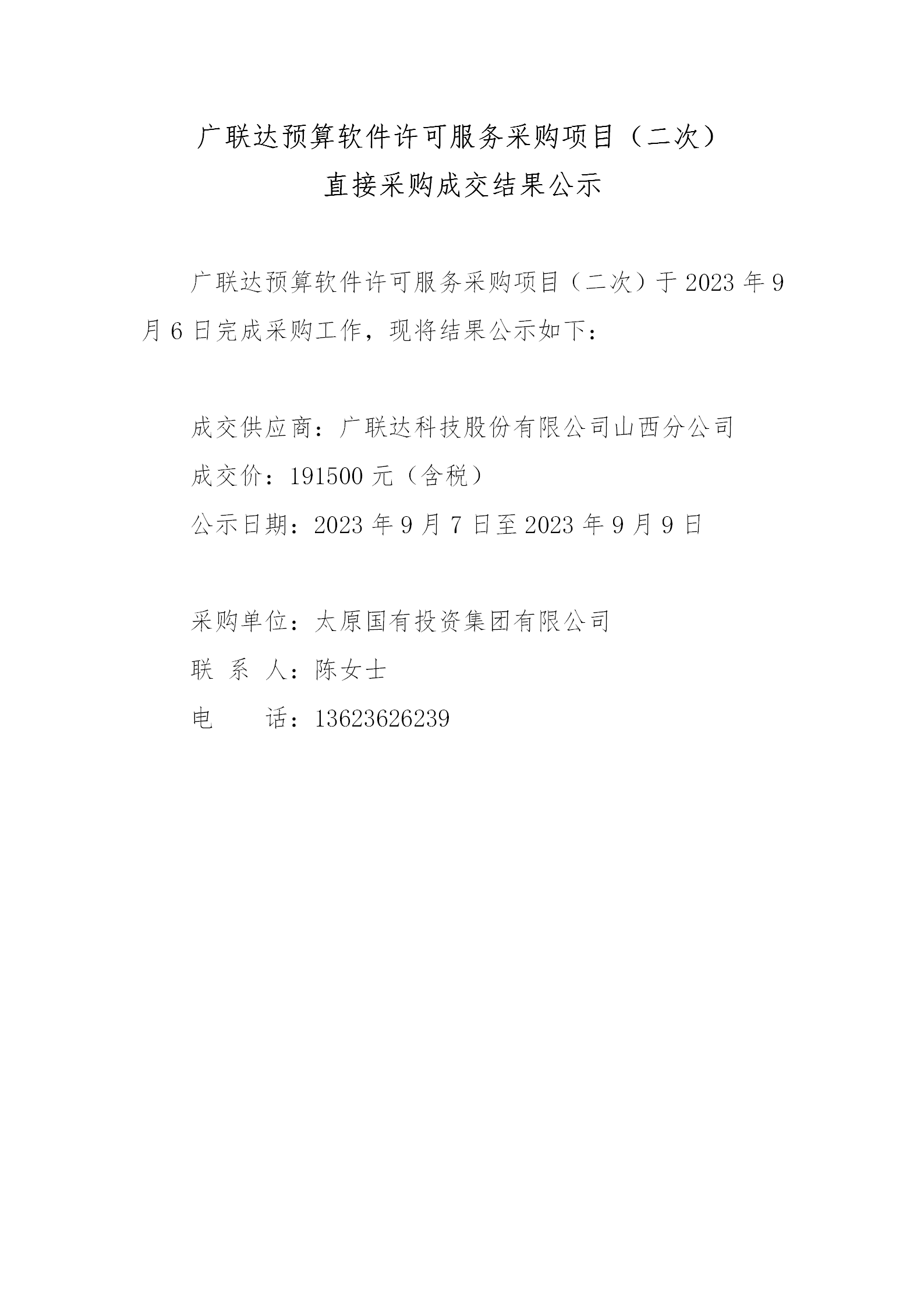 廣聯達預算軟件許可服務采購項目(二次)直接采購成交結果公示