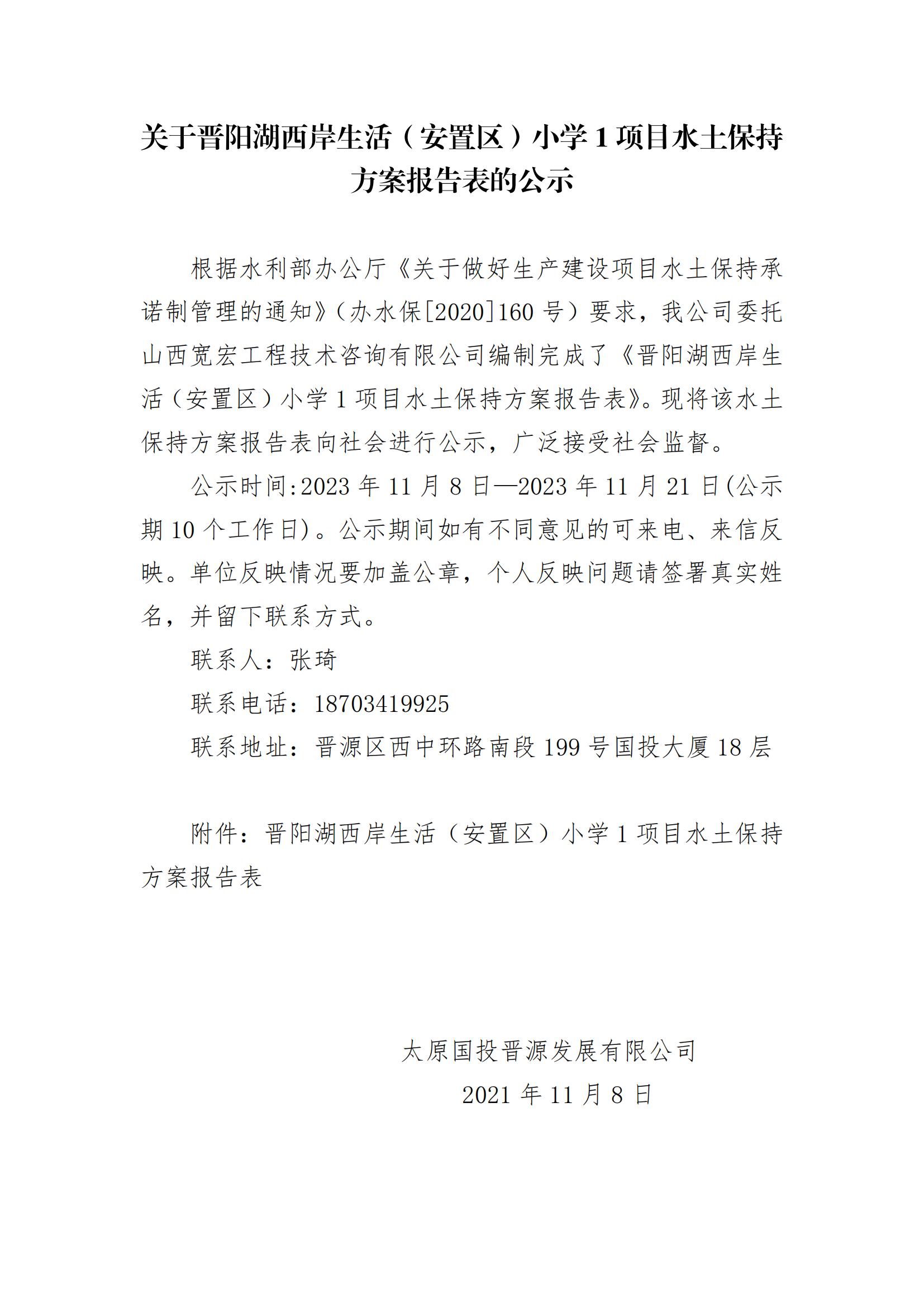 關(guān)于晉陽湖西岸生活(安置區(qū))小學(xué)1項(xiàng)目水土保持方案報(bào)告表的公示