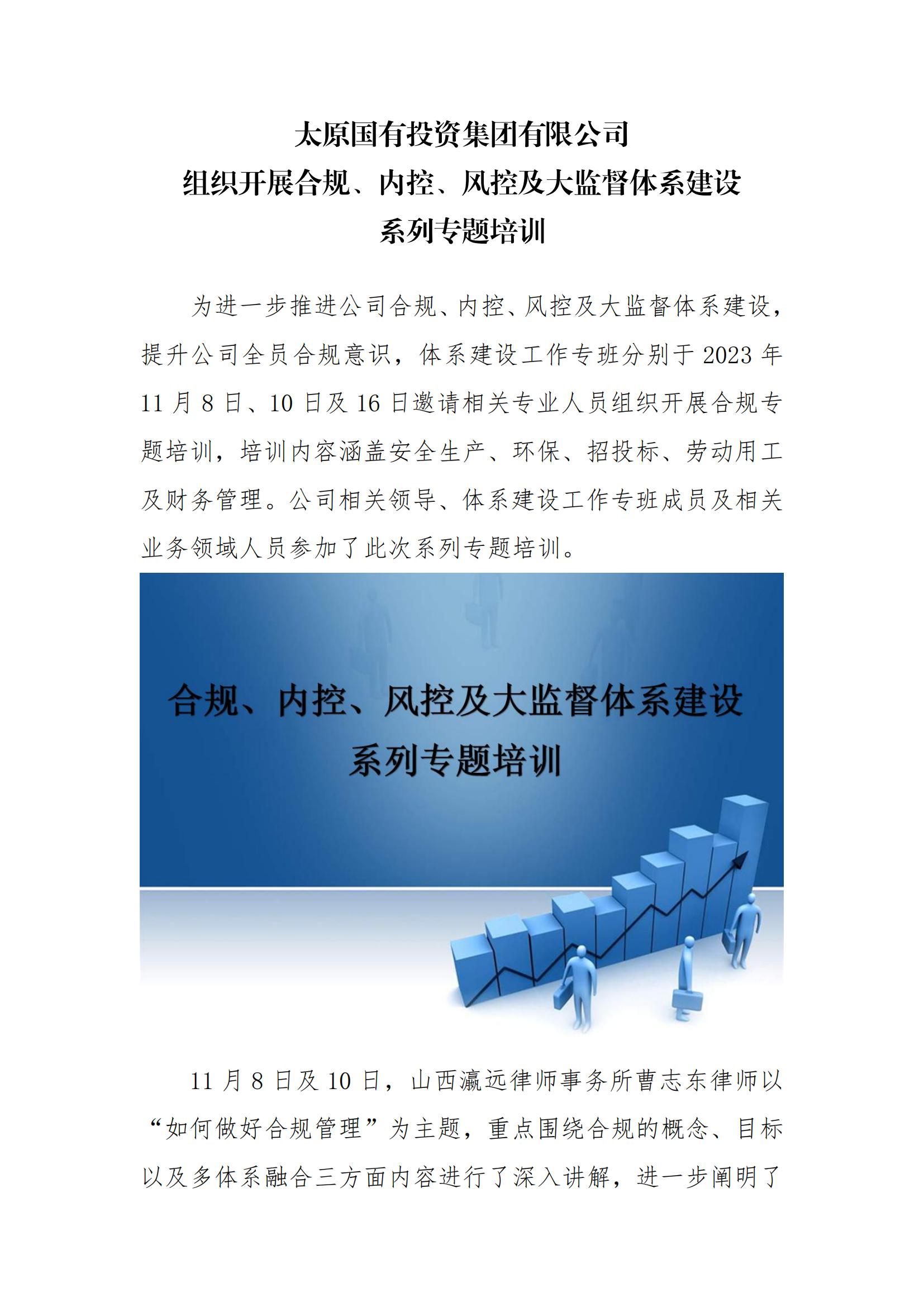 太原國有投資集團有限公司組織開展合規、內控、風控及大監督體系建設系列專題培訓