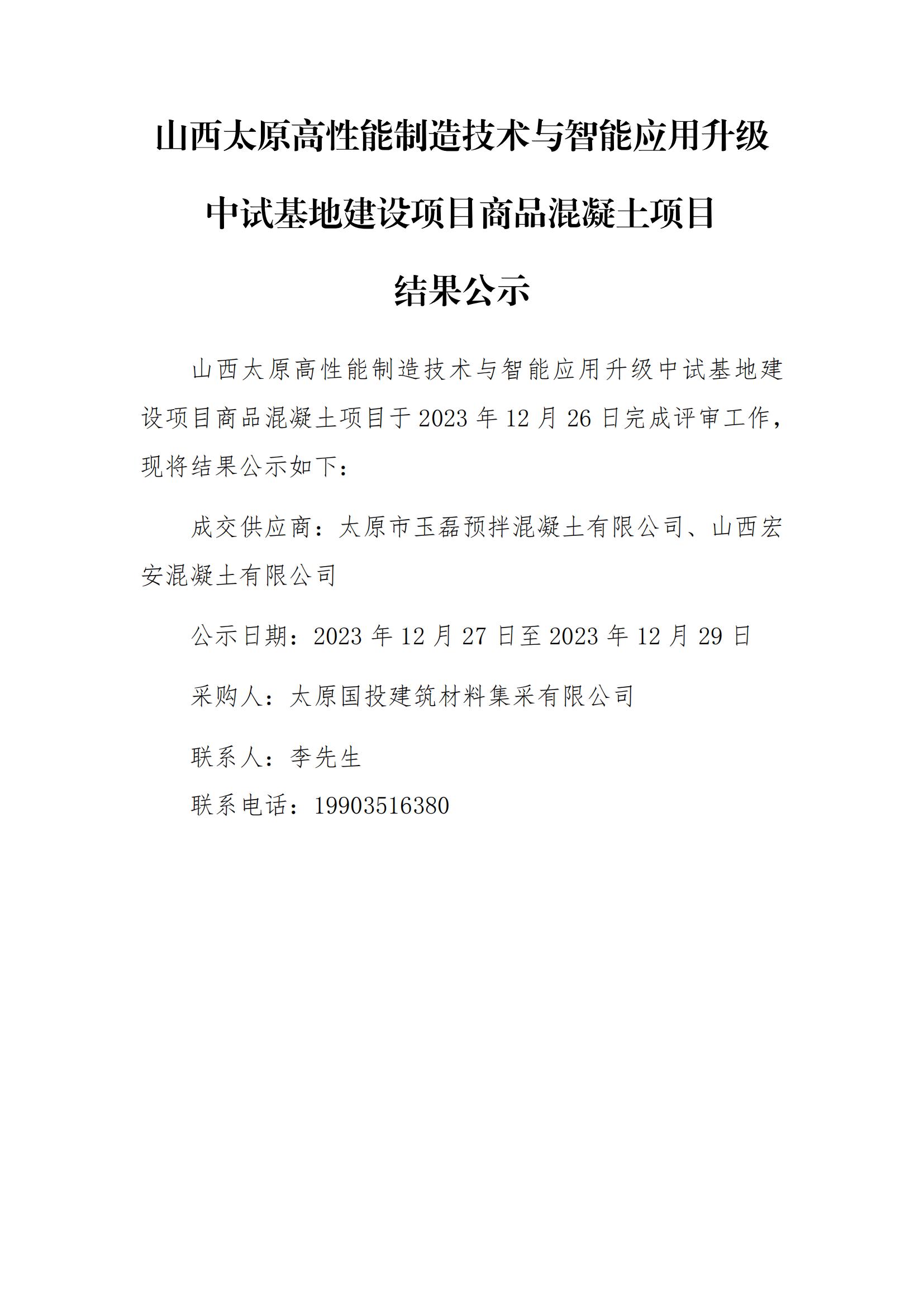 山西太原高性能制造技術(shù)與智能應(yīng)用升級中試基地建設(shè)項目商品混凝土項目結(jié)果公示