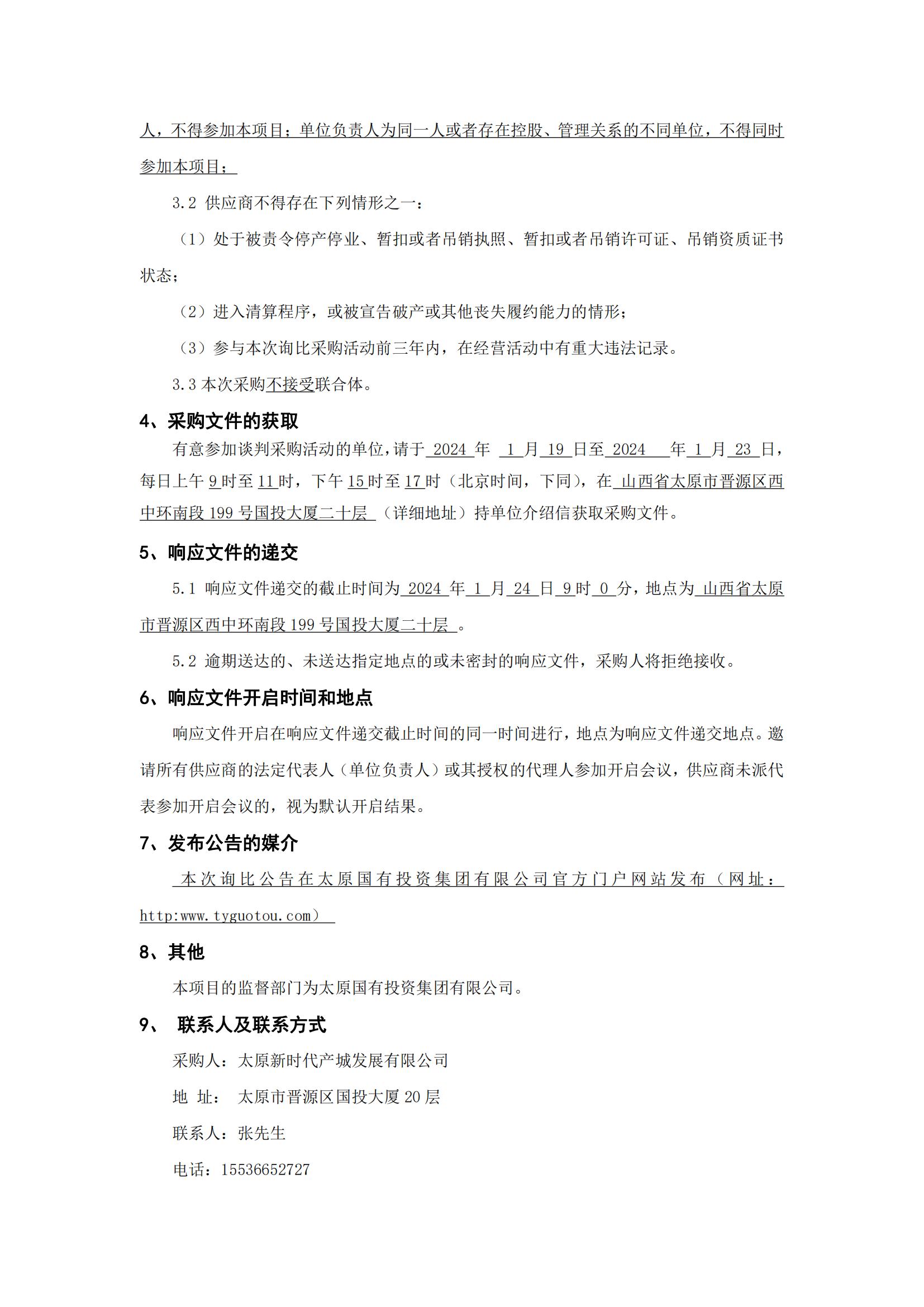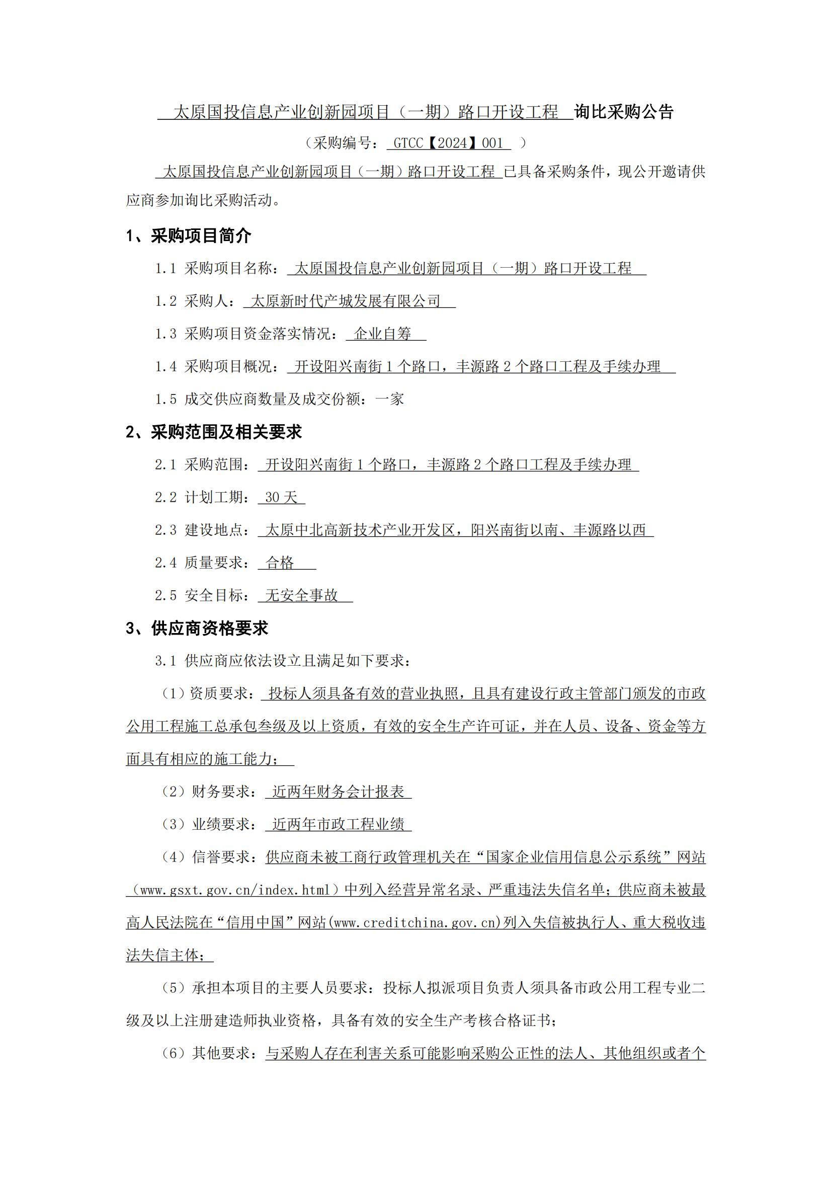 太原國投信息產業創新園項目(一期)路口開設工程 詢比采購公告