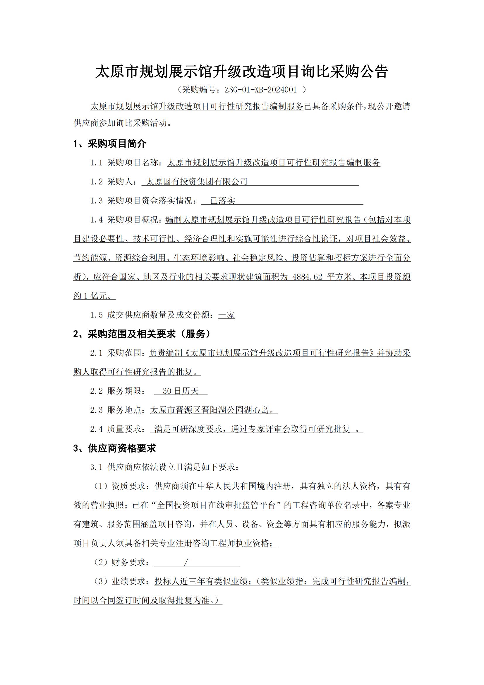 太原市規劃展示館升級改造項目可行性研究報告編制服務信息發布
