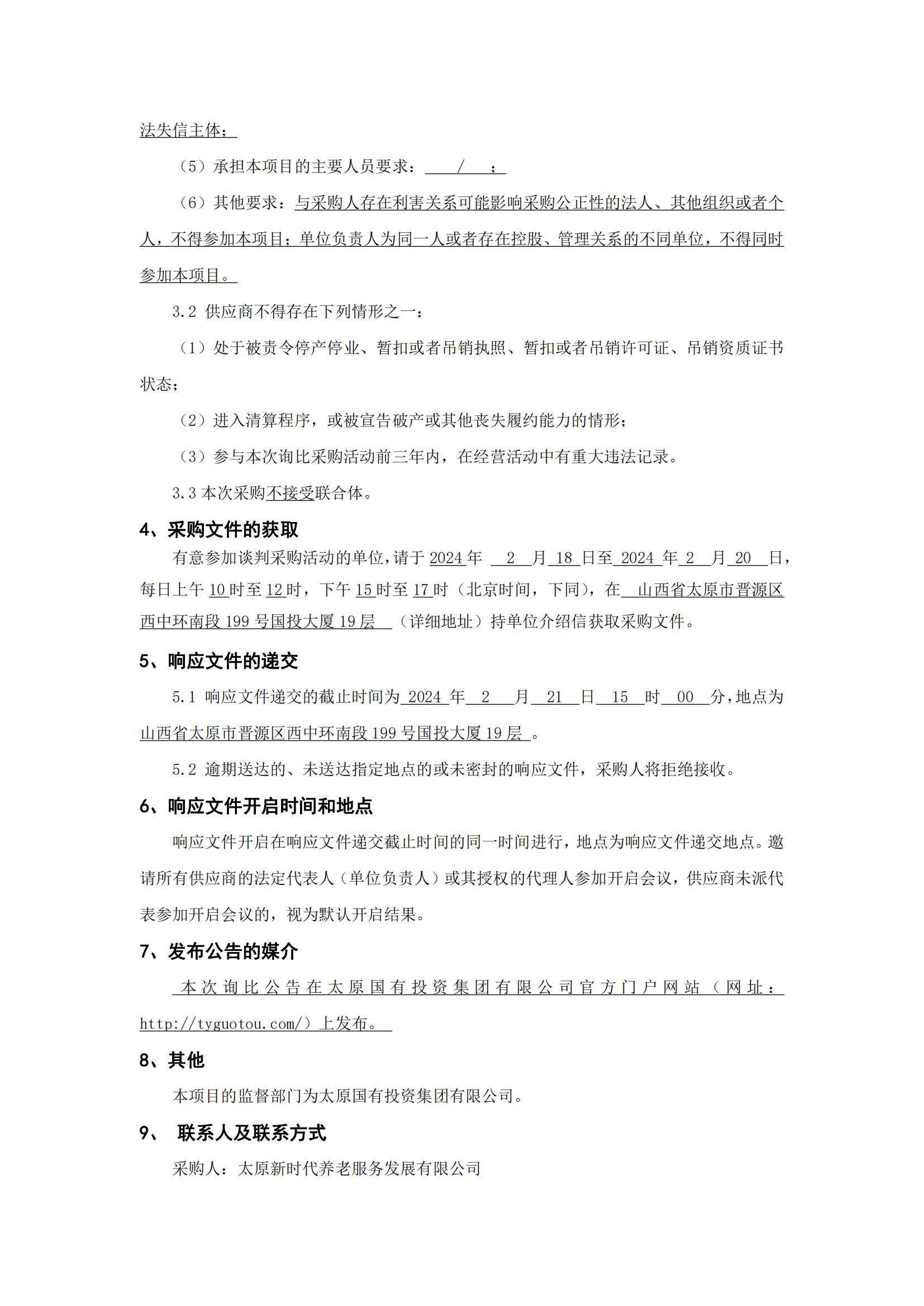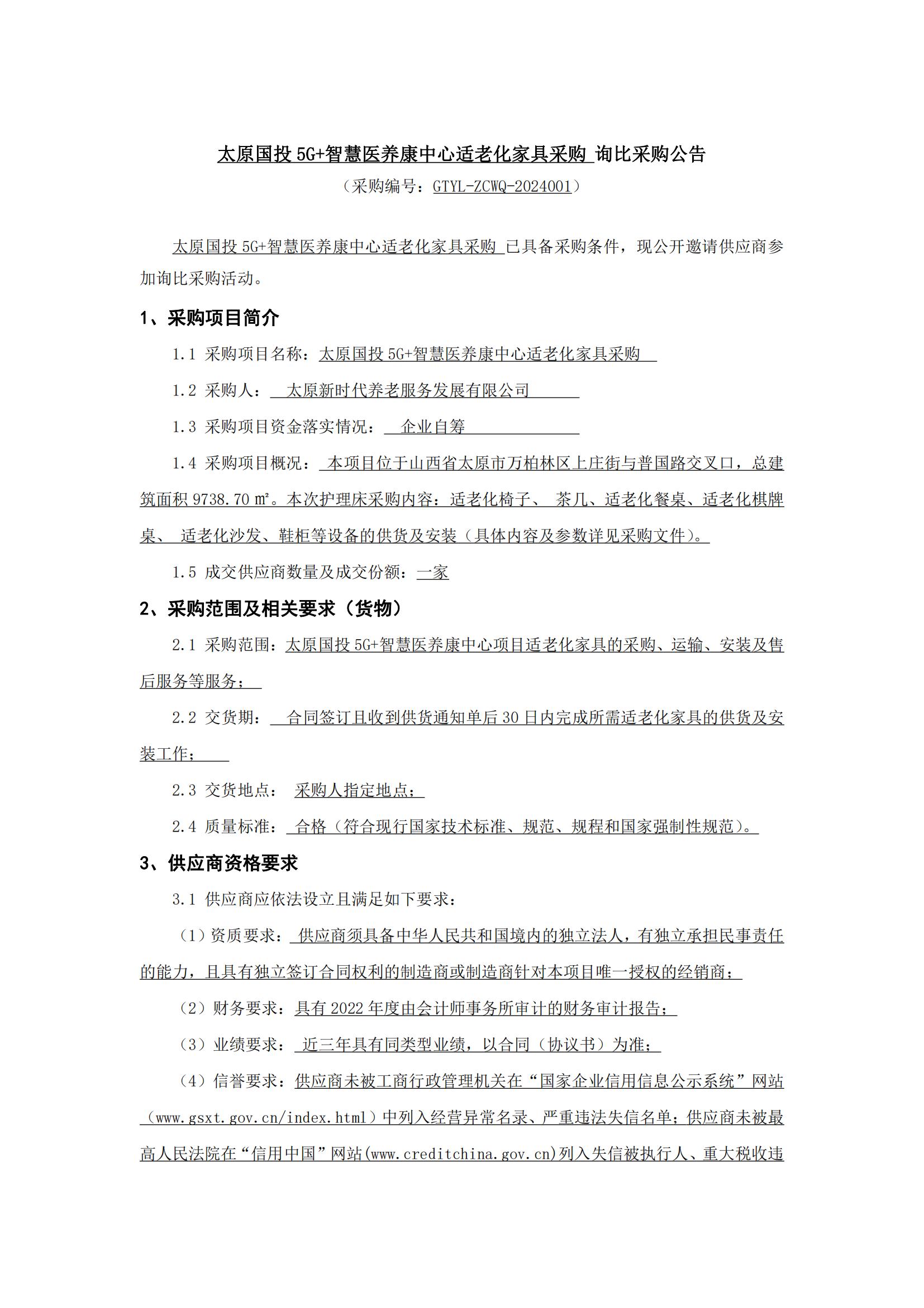 太原國投5G+智慧醫養康中心適老化家具采購 詢比采購公告