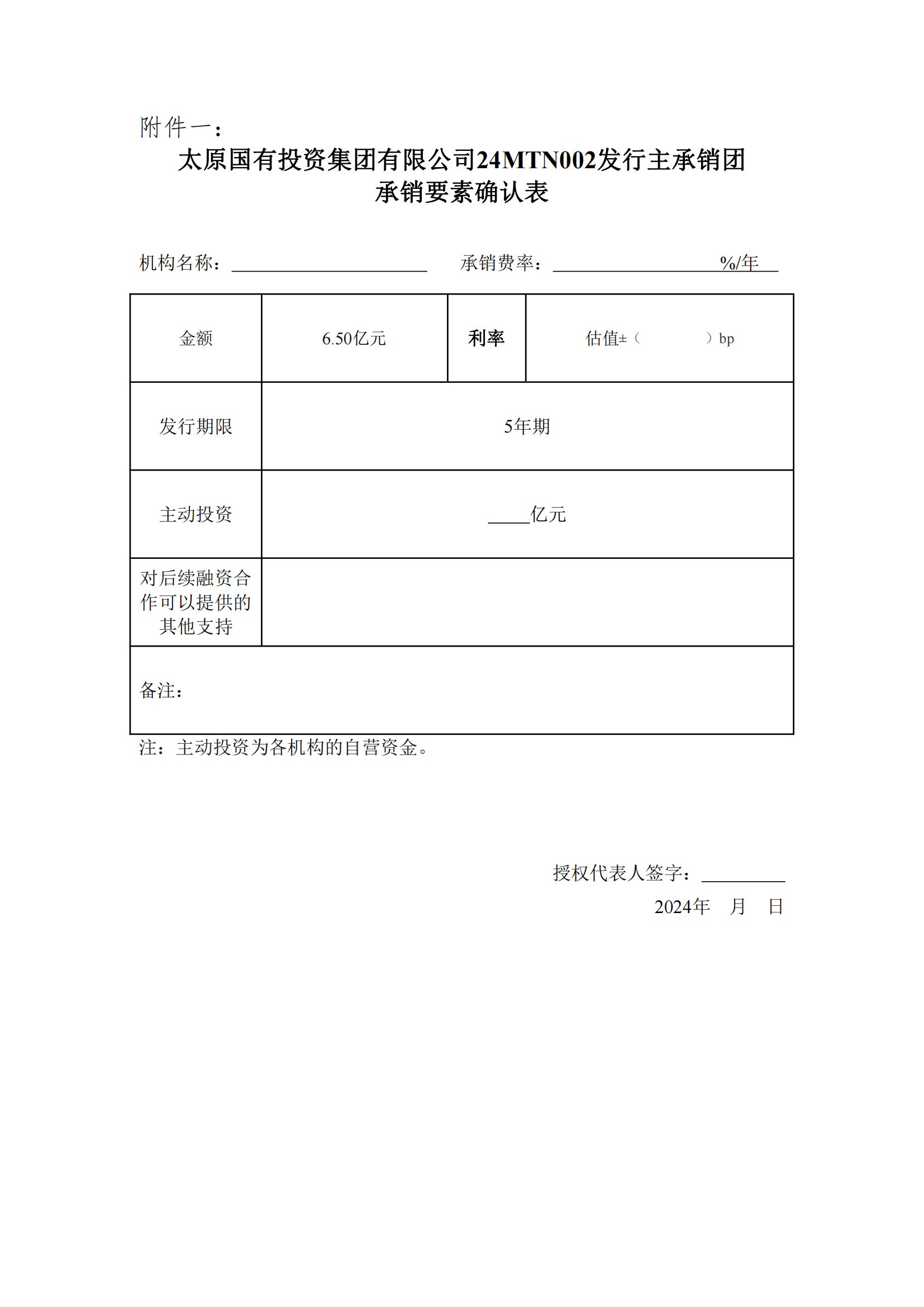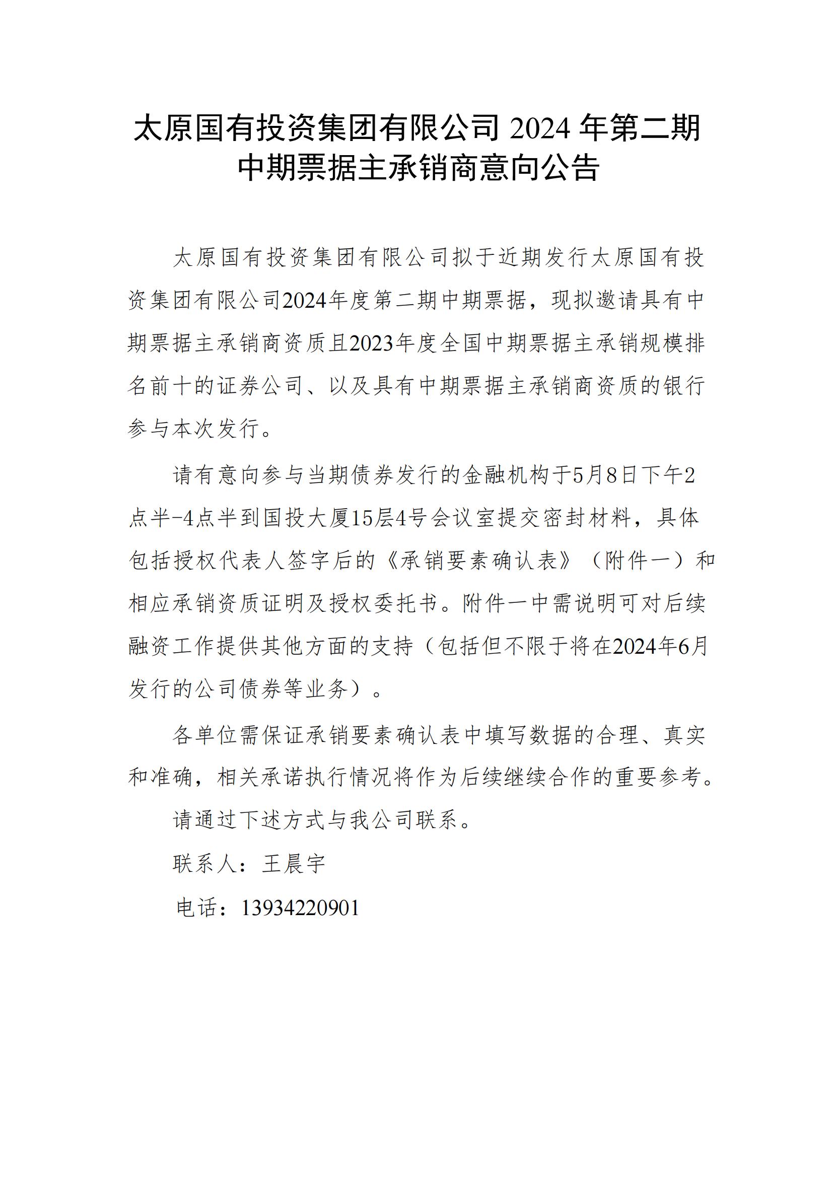 太原國有投資集團有限公司2024年第二期中期票據主承銷商擇選相關事項的公告