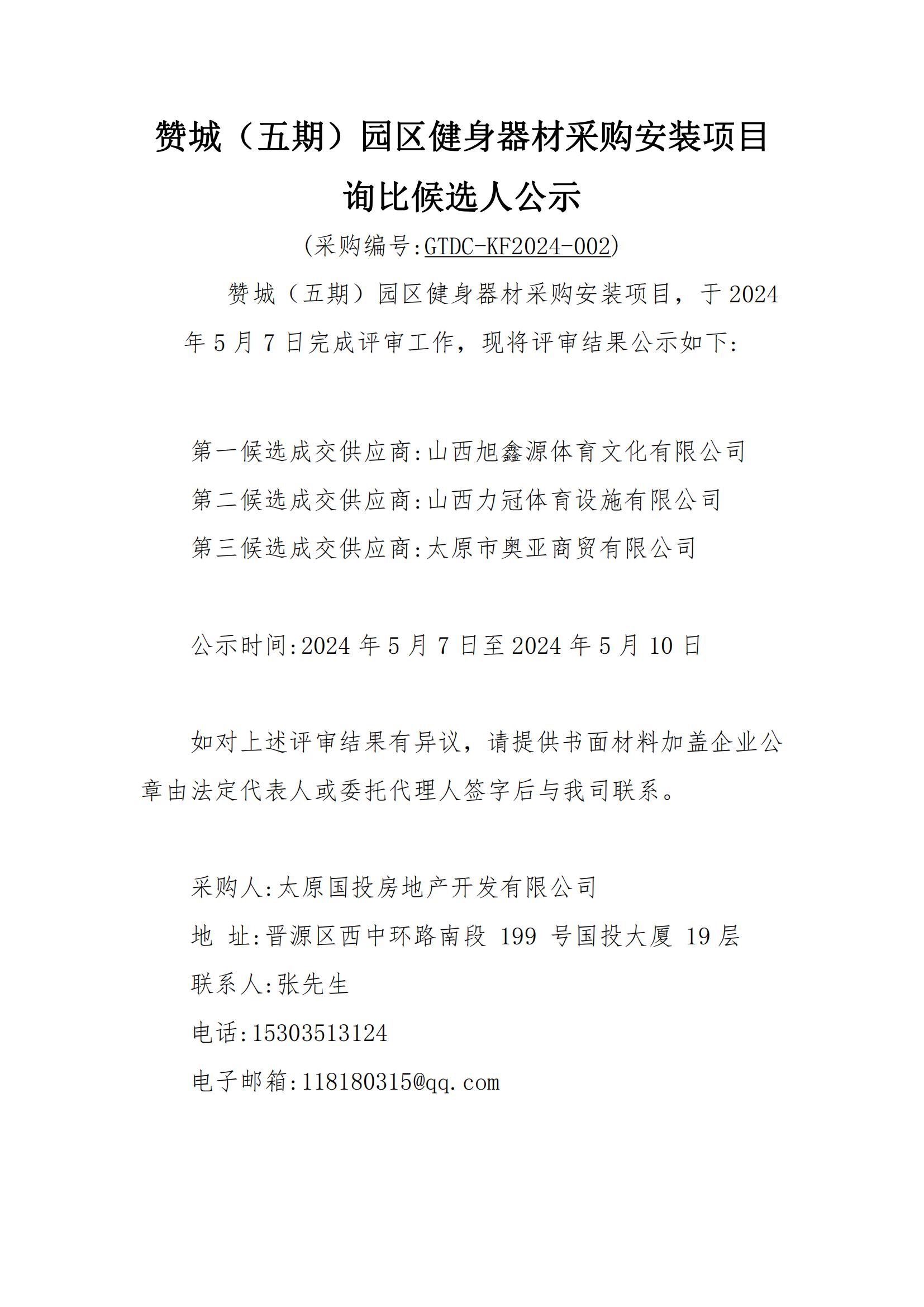 贊城(五期)園區健身器材采購安裝 詢比采購結果公示
