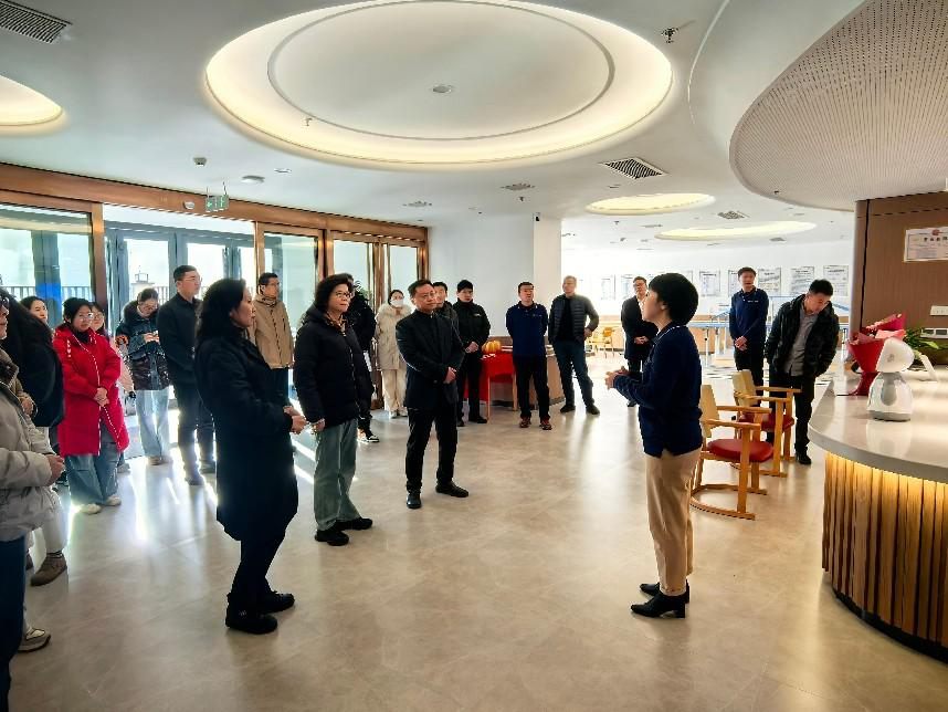 在太原國投晉安福智慧康養社區,郜校長一行參觀了智慧化設備展示區、康養照護專區、認知癥照護專區等功能區域,詳細了解了項目運營管理、康復護理、人員配備等具體情況。對晉安福項目設施設備配置、設計理念及細節、服務定位和規劃給予高度認可。隨后,郜校長一行來到太原國投慧享福贊城機構,了解機構特色服務項目開展情況以及近年來的運營管理經驗,對機構的服務水平和管理模式給予充分肯定。