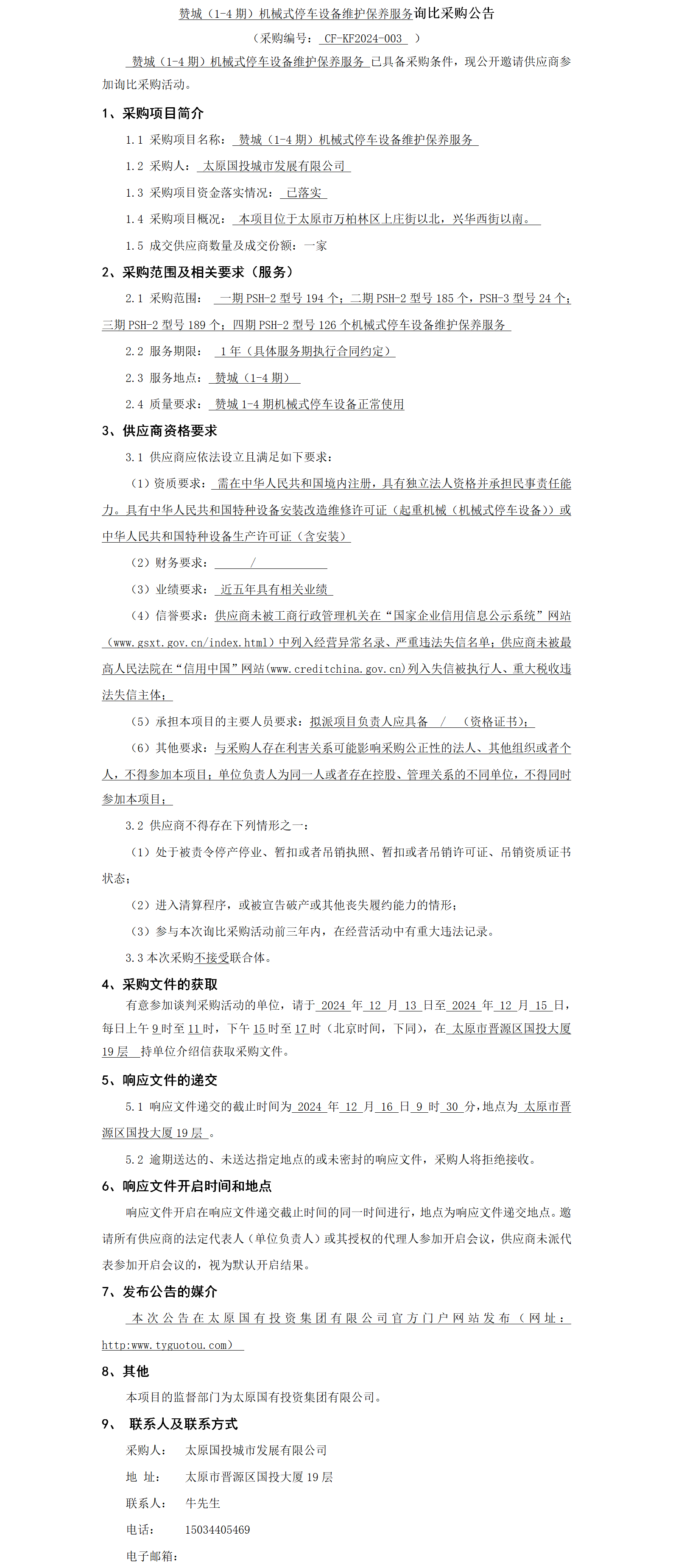 贊城(1-4期)機械式停車設備維護保養服務詢比采購公告