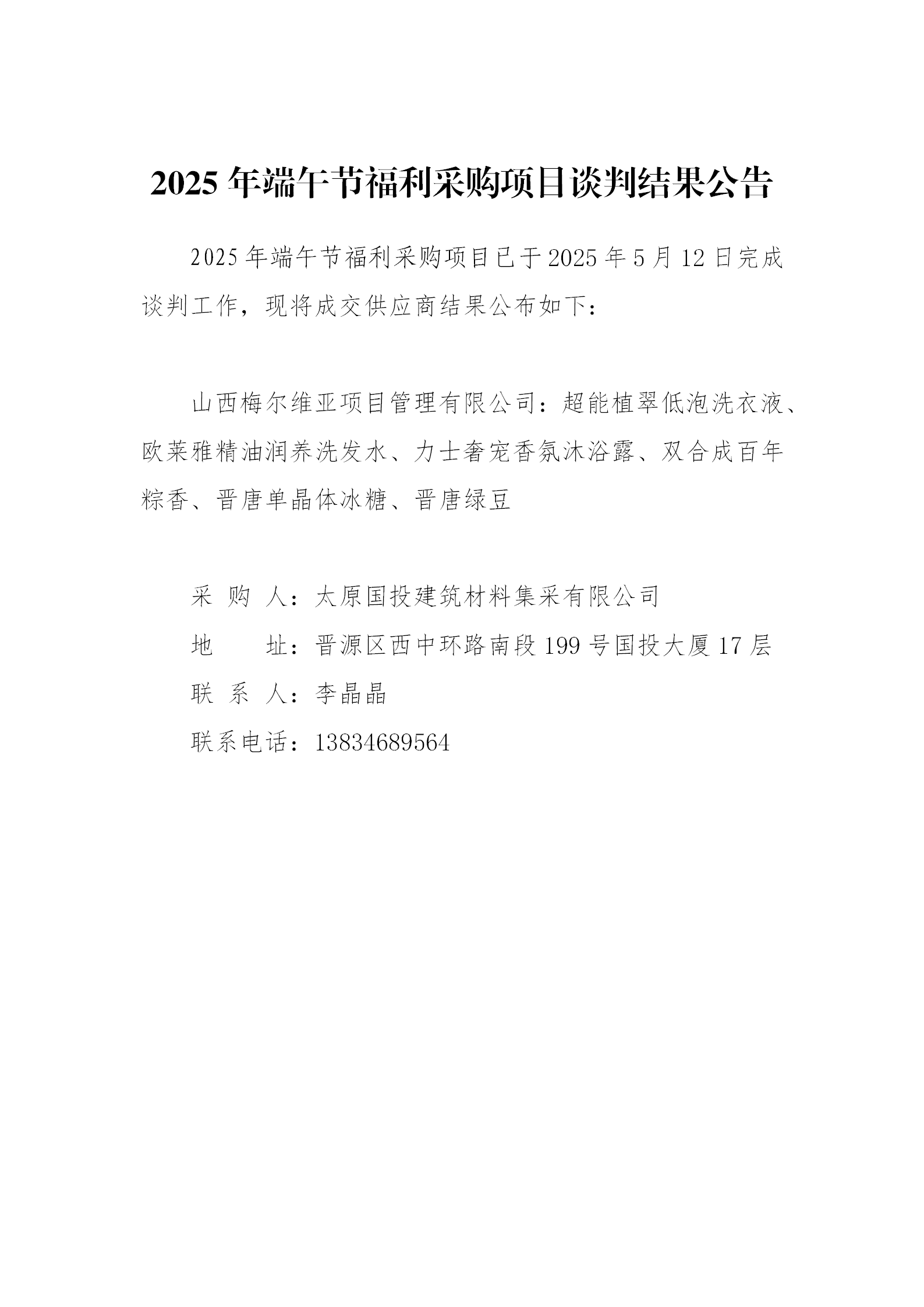 2025年端午節福利采購項目談判結果公告