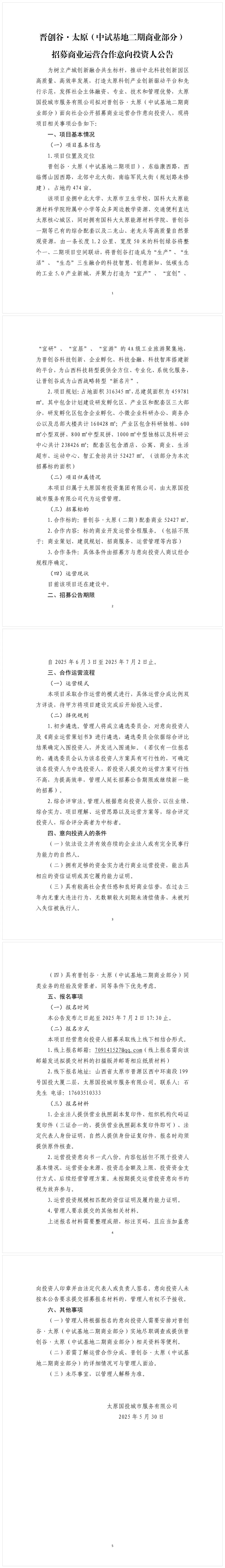 晉創谷·太原(中試基地二期商業部分) 招募商業運營合作意向投資人公告
