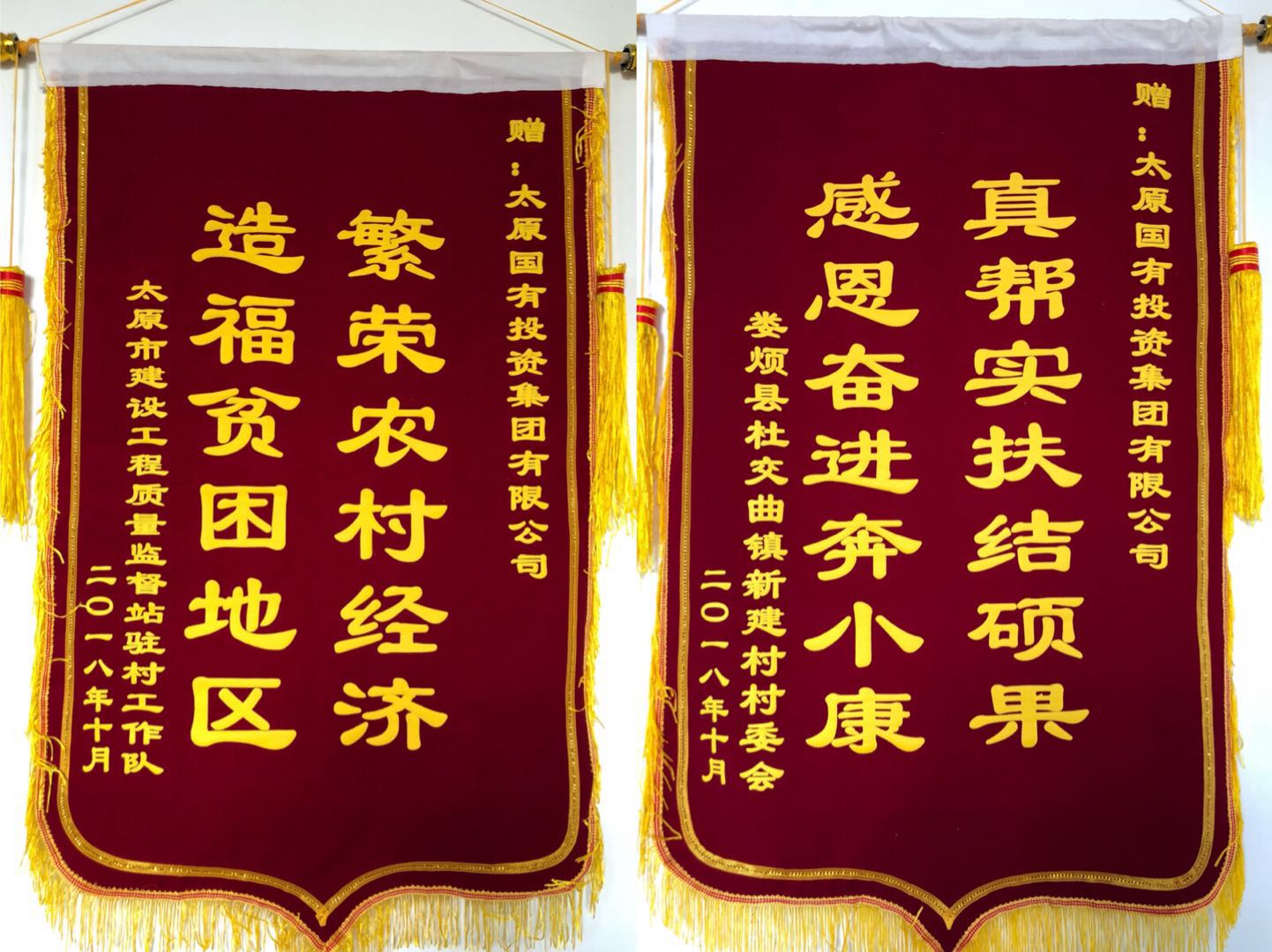 隨后,新建村村委會(huì)以及太原市建設(shè)工程質(zhì)量監(jiān)督站分別向我公司贈(zèng)送了“繁榮農(nóng)村經(jīng)濟(jì)造福貧困地區(qū)”及“真幫實(shí)扶結(jié)碩果感恩奮進(jìn)奔小康”的錦旗。