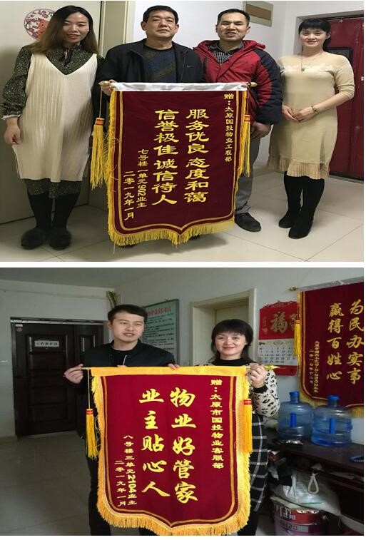 2019年1月29日,國興小區中,國投物業全體員工都在為新的一天有條不紊的忙碌著,辦公室被一股認真和諧的氛圍籠罩著。突然傳來的幾句笑語打破了這份安靜,原來是小區業主送來了錦旗。這位業主家的可視對講機出現了故障,雖然已到下班時間,但物業工作人員火速應對,顧不上吃飯,經過三個多小時,輾轉好幾家五金店配齊了所需更換的材料,當晚就使可視對講機恢復了正常。業主表示:“你們熱情的服務和負責的態度讓我感動,非常感謝你們!” 2019年新年伊始,這已經是國投物業收到的第二面錦旗,這令我公司的全體工作人員倍感欣慰!