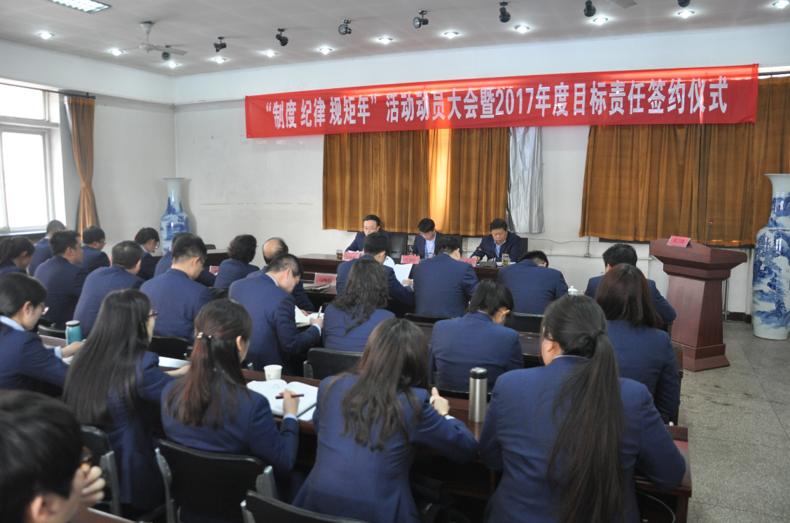 2017年3月10日下午,太原國投集團“制度、紀律、規矩年”活動動員大會暨2017年度目標責任簽約儀式于大會議室隆重舉行,公司全體領導員工參加了本次會議。